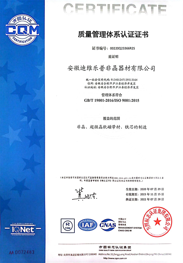 為響應(yīng)國家標(biāo)準(zhǔn)化發(fā)展綱要,推動高質(zhì)量發(fā)展,建設(shè)社會主義現(xiàn)代化國家。 安徽迪維樂普非晶器材有限公司、非晶合金電力互感器材料研究中心;為促進標(biāo) 準(zhǔn)化發(fā)展、提升標(biāo)準(zhǔn)化水平;實現(xiàn)企業(yè)有序發(fā)展、有規(guī)可循;產(chǎn)品質(zhì)量有據(jù)可依、 方便客戶甄別選用,特制定本企業(yè)質(zhì)量標(biāo)準(zhǔn)。